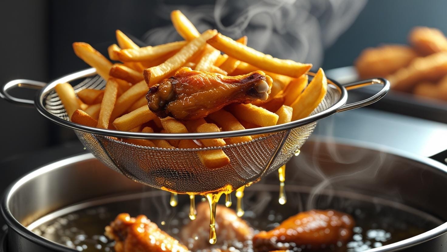 Never use aerosol cans (Pam) in your fryer; the propellants ruin the coating. Instead, fill a mister with high-quality oils for air frying like Avocado oil.